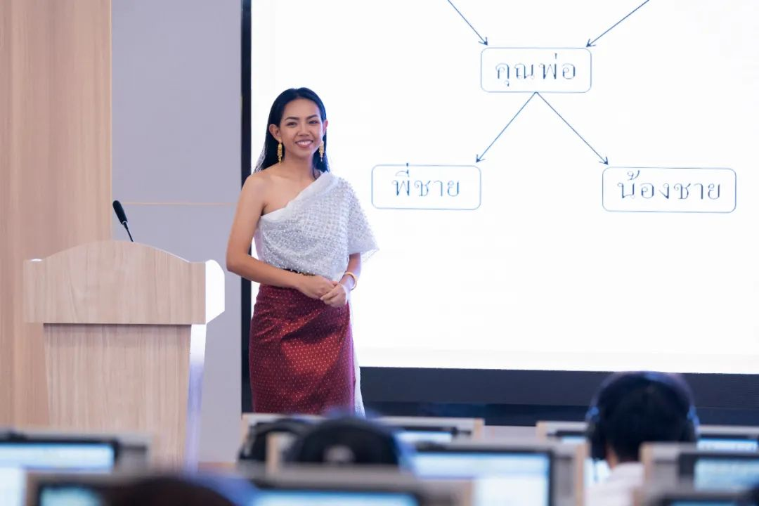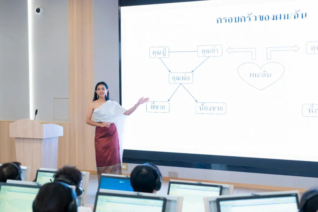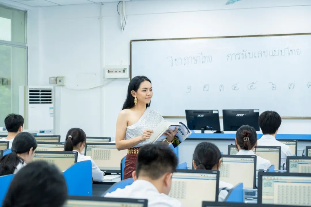 本专业拥有语音实训室、泰国文化体验馆、国贸综合实训室等,可满足学生进行泰语视听训练、口语交际、专业技能提升等实践教学活动的需求。为学生学习外国文化、提高外语水平提供了广阔的平台,为培养具有扎实外语基础和商务知识、拥有深厚文化底蕴的高层次技术技能人才提供了坚实保障。