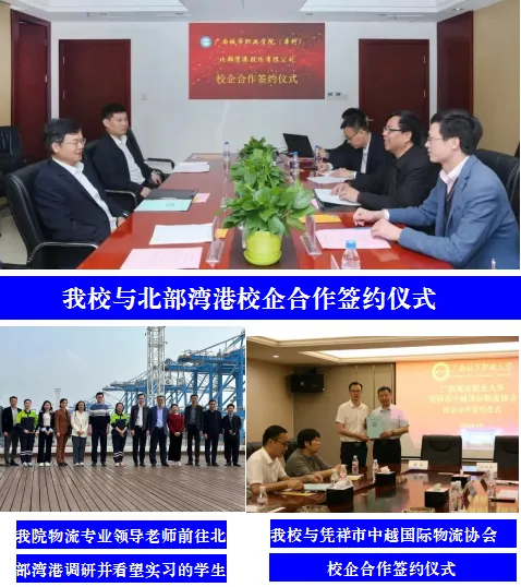 现代物流管理学院通过引企业入校、引技术入册、引产品入课、引大师入教、教学融入车间、教室融入企业、学生融入岗位、学校融入园区等“四引四融”深化WQT.COM玩球通。与广西凭祥综合保税区、崇左市凭祥中越国际物流协会、广西北部湾港股份有限公司、中国外运广西公司、广西玉柴物流股份有限公司、广西南天物流有限公司等12家大中型物流行业企业建立校企合作关系,进行校企合作,服务区域经济发展。