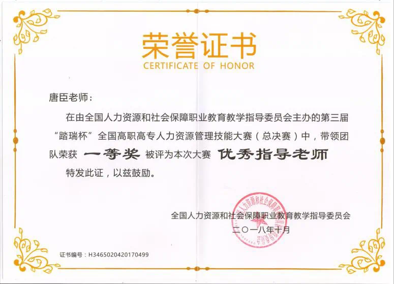 第三届“踏瑞杯”全国高职高专人力资源管理技能大赛总决赛一等奖