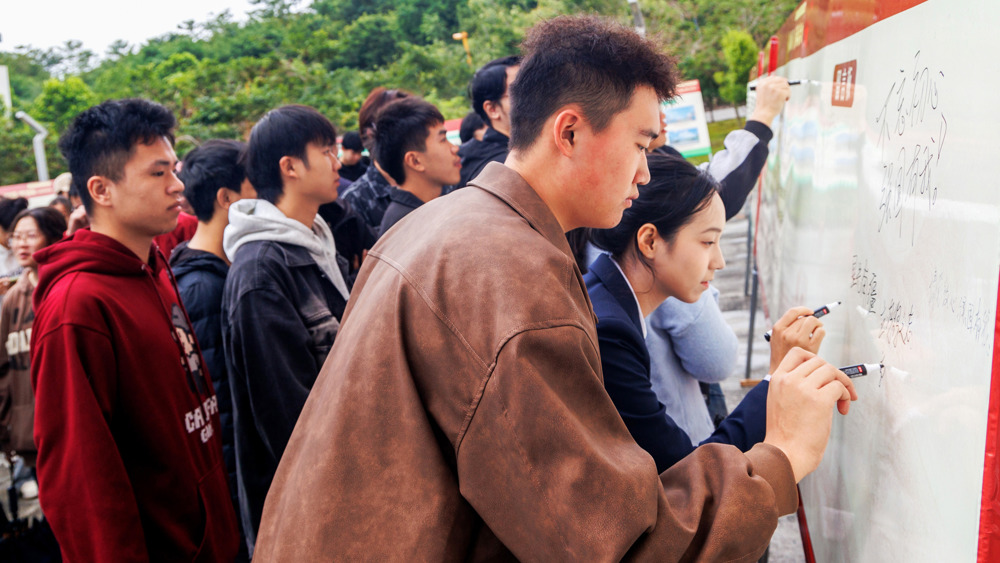 学生们在互动留言墙留言