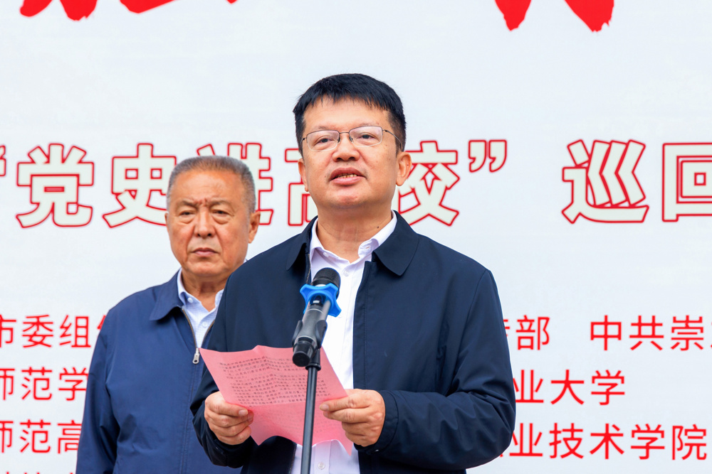 市委党史研究室主任韦阳发表讲话,他回顾了中共广西组织百年奋斗的光辉历程,强调青年一代肩负的历史使命,寄语广大学子要从百年党史中汲取信仰力量、筑牢理想根基,以“青春接力”姿态传承红色薪火,用实际行动书写新时代南疆青年的责任与担当,让革命精神在新时代绽放新的光芒。