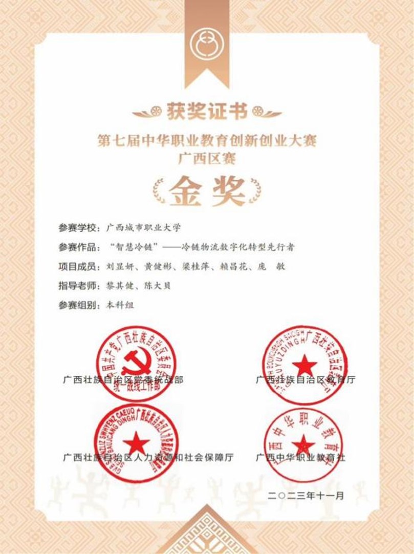 · 中华职业教育创新创业大赛金奖