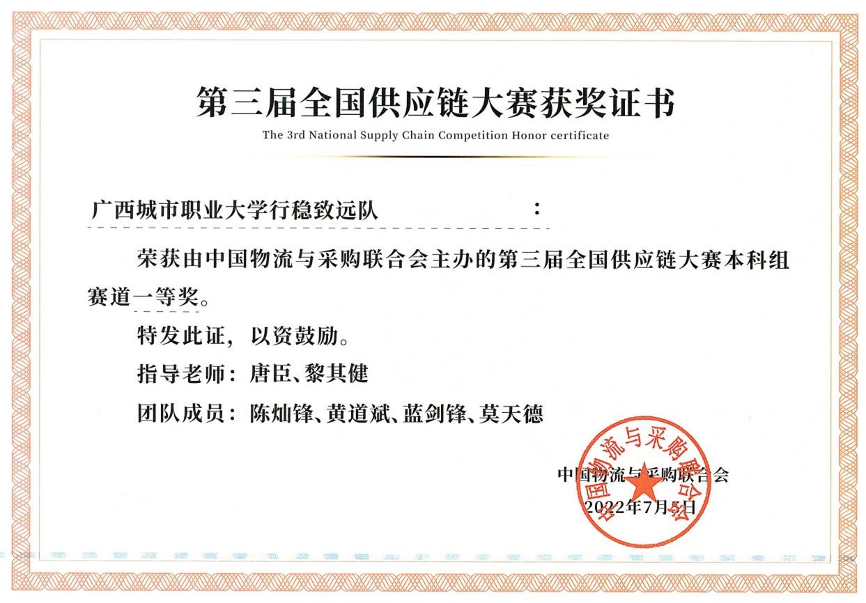 全国供应链大赛本科组赛道一等奖