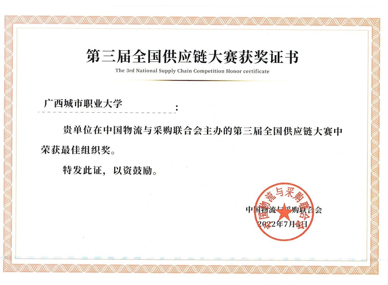 第三届全国供应链大赛最佳组织奖