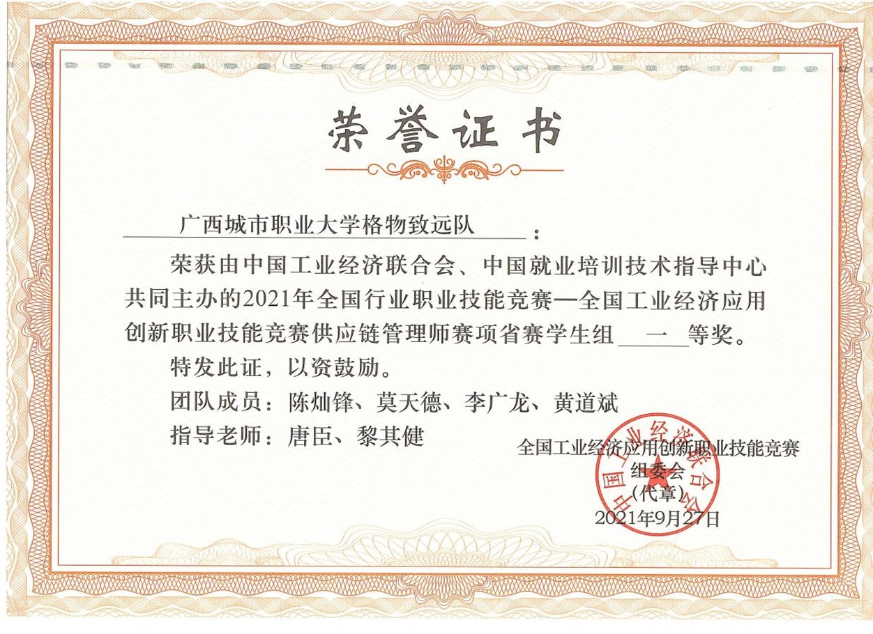 全国工业经济应用创新职业技能竞赛供应链管理师赛项省赛一等奖